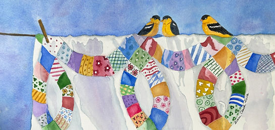 For most of my life I have expressed my art with needle and thread. On a whim I recently took a watercolor painting class and fell in love with the whimsical and free way the water interacts with the paint moving it across the paper. It almost seems to bring the painting to life with little assistance from me. I have done some oil and acrylic painting but watercolor remains my favorite medium because of the interaction between the water and paint. Needle art continues to be my focus but I really love the time I spend with brush in hand and bits of paint all over me. It's fun to include my quilts and lace curtains in my paintings but I also enjoy trying my hand at southern favorites like china, flowers, and of course dogs.